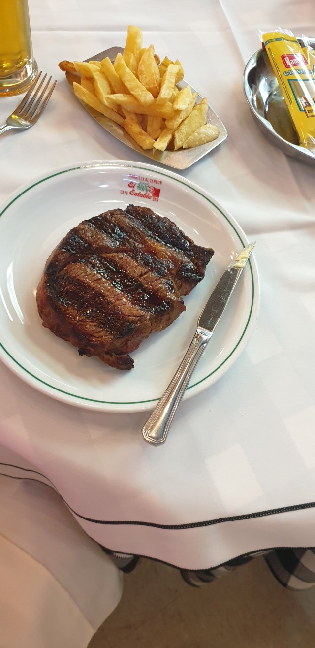 My 480 gram steak, chips and pint of lager came to 1208 Argentina peso, approximately £18