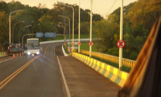 We then crossed over, by coach, into Brazil which consisted of Jose the guide taking all our passports into the immigration place whilst we sat on the coach and then returning 15 minutes later and off we went!This is the bridge that divides Argentina and Brazil