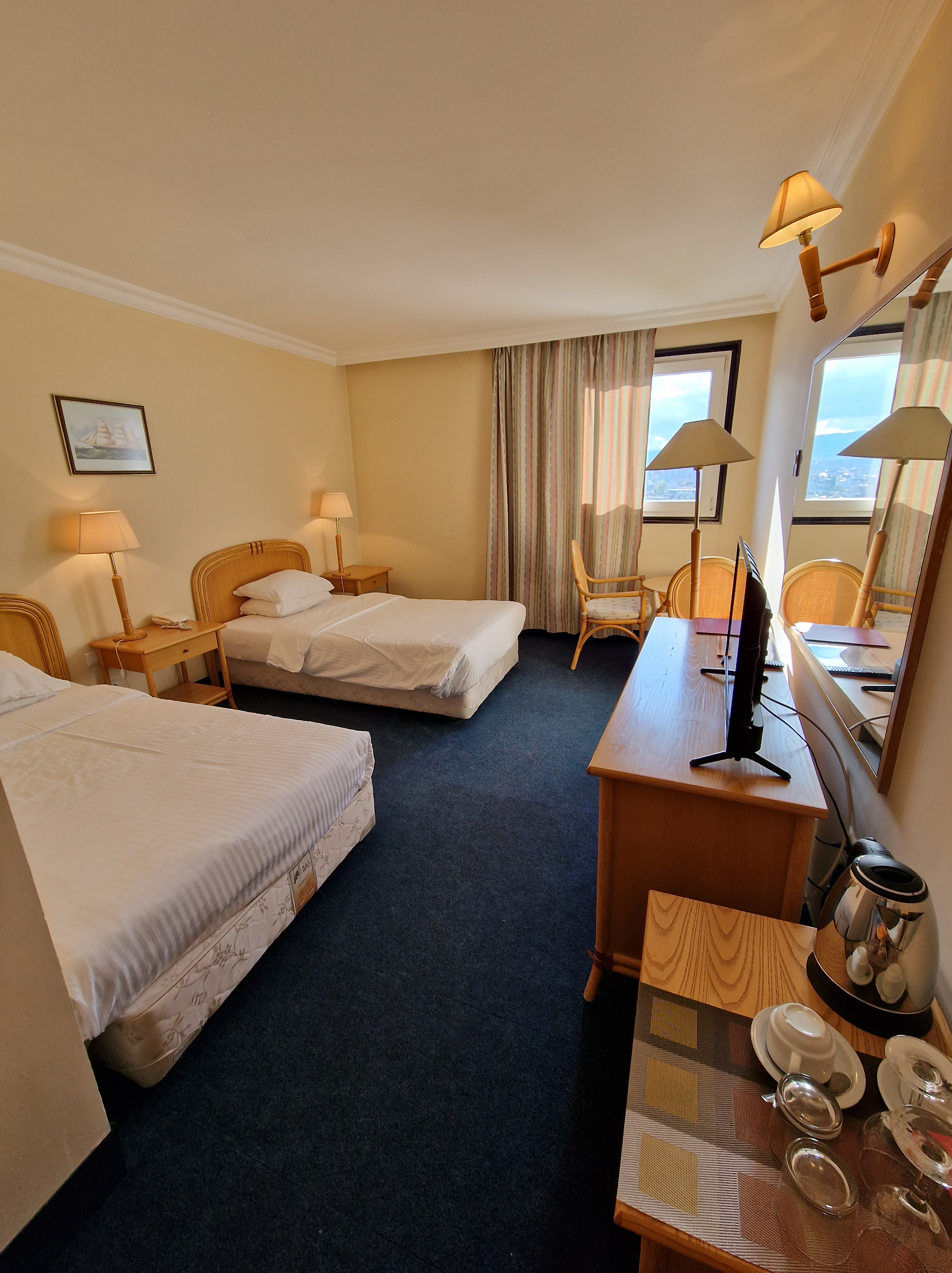 My room is nice but the bathroom has a bath with a shower over and old fashioned shower curtain. Hey ho. Can’t have everything.
