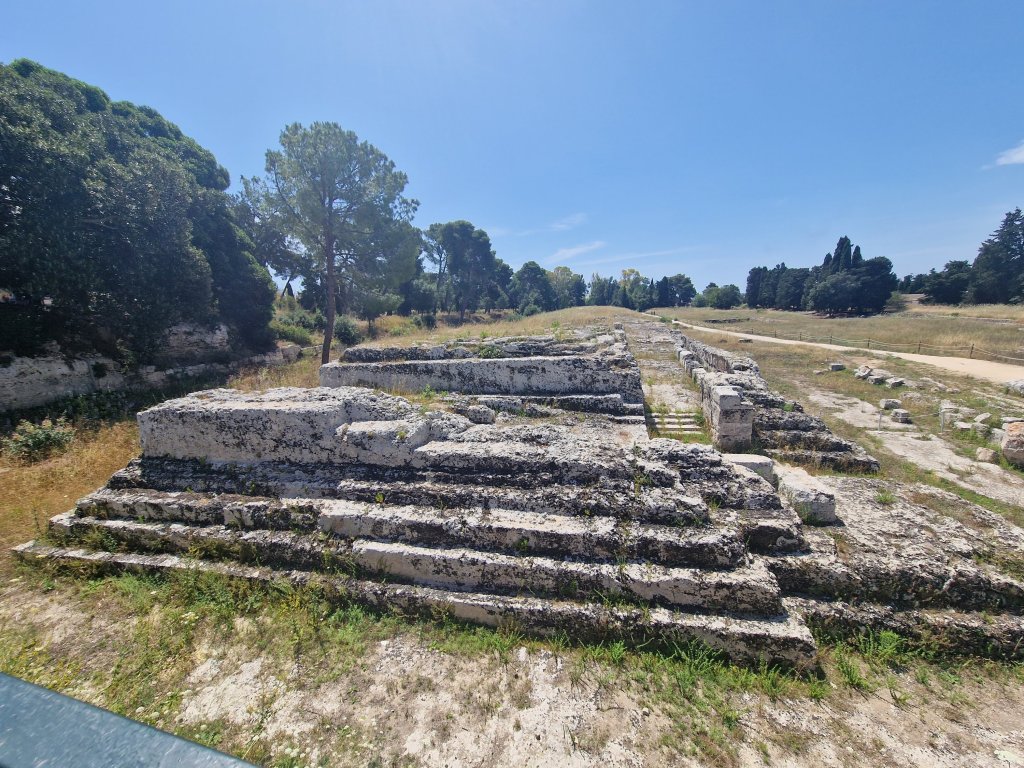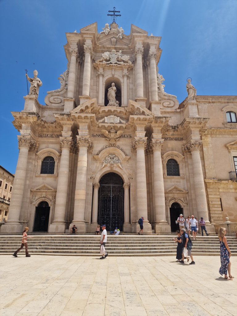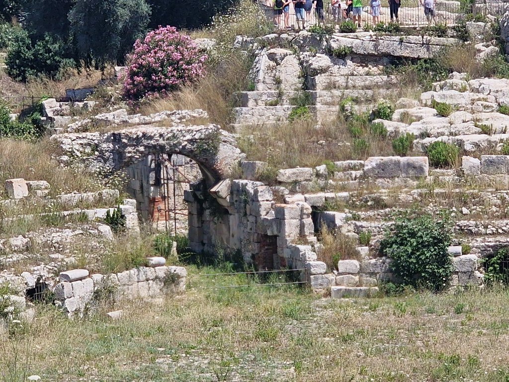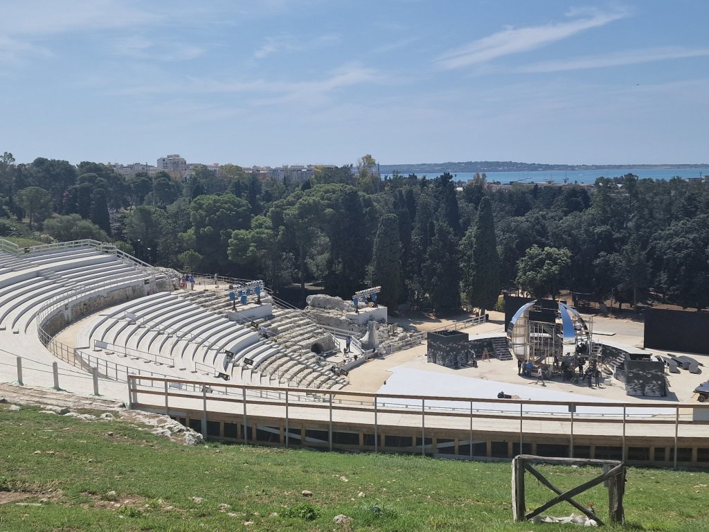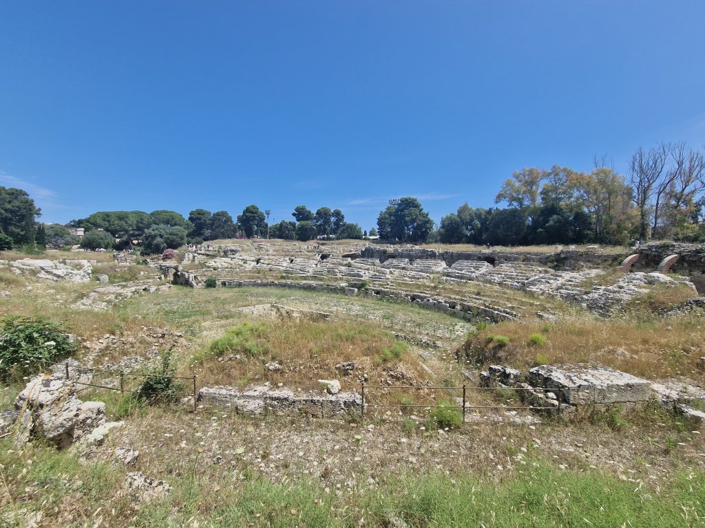 So today we went to Siracuse not with a ‘y’ and Ortigia which I think is an island off Siracuse which used to be Siracuse but isn’t nowπŸ€¦πŸ»β€β™€οΈ. I have information overload which means I haven’t retained anything from today! We went to the archeology site on Siracuse where I did sea a theatre which was all decked up because from May to July they perform plays there. Two tragedies and one comedy. And I saw a roman amphitheatre which I learned is two theatres put together! Amphi meaning double or something like that. We then went down to Ortigio and wandered round there. All in all a very nice day and now I’m sat here!