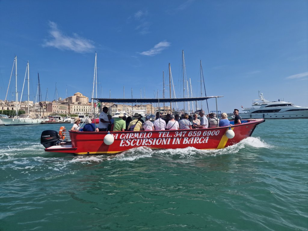 The other half of our group on our boat trip round Ortigia