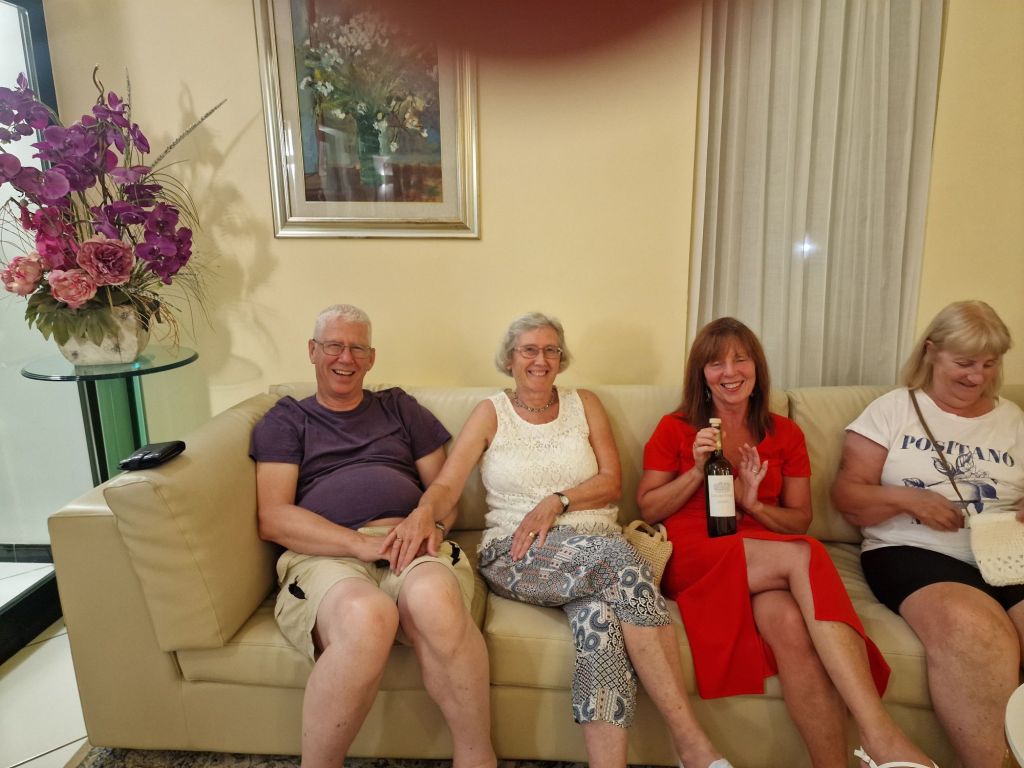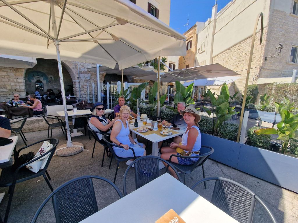 Phillip whose birthday it was (69) is very well travelled.Β  He also stopped telling me only after day 4 that I must have booked really early to get the front seat! (His seat). He also kept forgetting my nameπŸ˜‚.Β  It wasn’t until we’d walked for miles up a hill to get to the old town of Fiuggi that he told us he had a heart problem and weak ankles! He then fell over because of his weak ankles on the way to the beach in Rodi Garganico and came back with two plasters on his face and a bandaged wrist πŸ€·πŸ»β€β™€οΈ